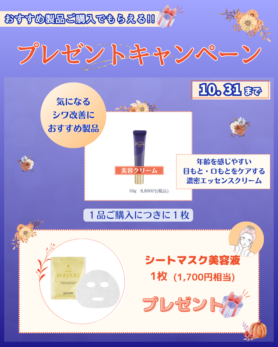 1品ご購入につき、マスクシート美容液(1,700円相当)1枚 プレゼント🎁