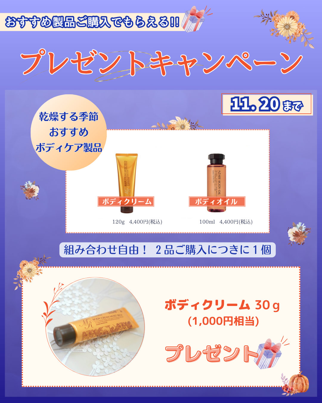 2品ご購入につき、ボディクリーム30g(1,000円相当)1個 プレゼント🎁