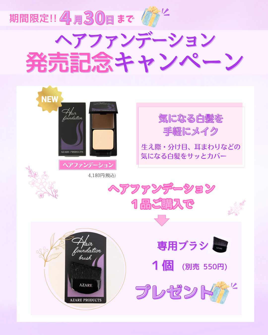 1品ご購入につき、専用ブラシ1個 (別売 550円) プレゼント🎁